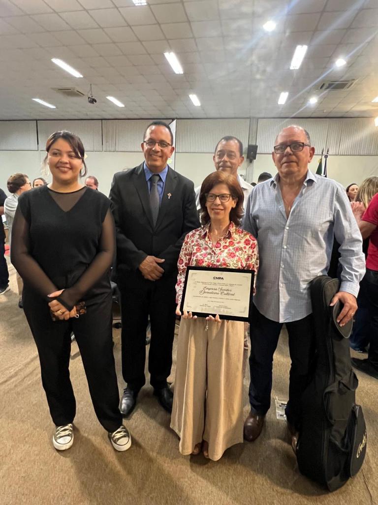 Na foto ao lado: Karol Rocha e Suzana Coutinho, representando a Sonidos Cultural, o Vereador Dionísio Pereira e os músicos, filhos de Nonô e Naná, Henrique e Odilon Basílio.