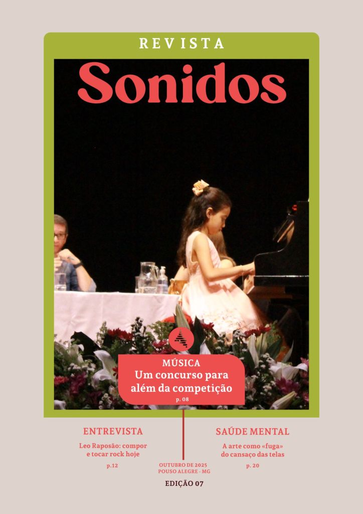 A sétima edição apresenta o Concurso de Piano, promovido pelo Conservatório Estadual de Música de Pouso Alegre, em sua dimensão artística e educativa. A entrevista é com o roqueiro Leo Raposão. E tem a conversa com o psicanalista e arte-educador Beto Silva, imperdível. A escritora Cleidiane Souza lança mais dois livros infantis. Ainda, o artigo de Tadeu Rodrigues e o conteúdo da Latiniarte (música, videogame e a nossa relação com os fantasmas e com a morte).